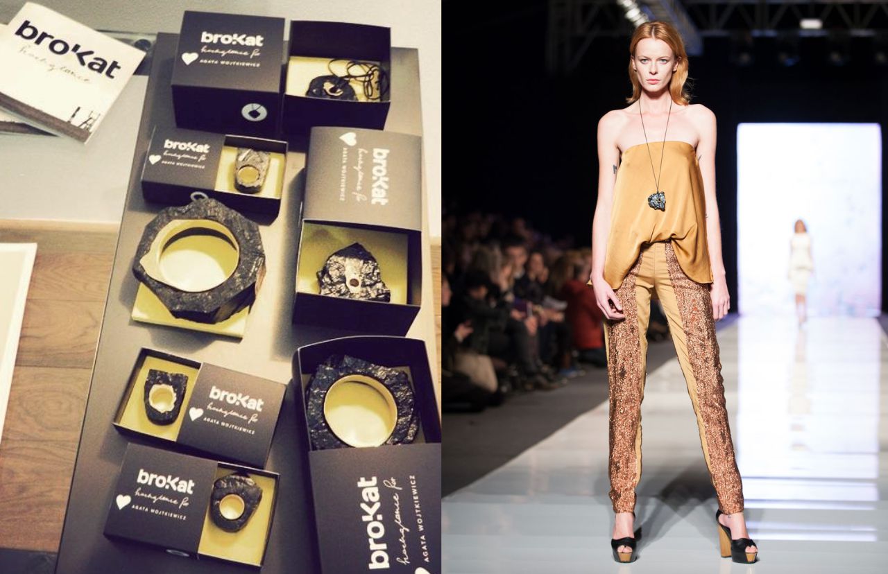 Limited edition of hard coal jewellery was designed at the request of Agata Wojtkiewicz for her EON spring/summer 2013 collection showed at Fashion Week Poland in Łódź.